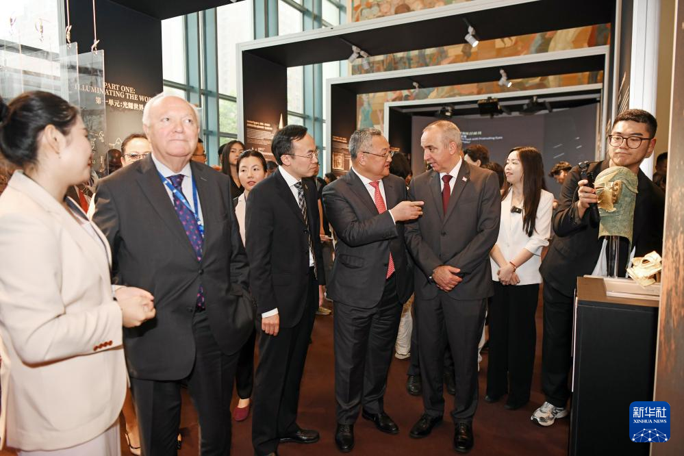 随后,由“《文明宣言》——人类命运共同体的美好画卷I”“太阳之光——古蜀文明与世界”“文明互鉴·世界愿景”图形印展三部分组成的“文明交流互鉴”系列展览也在联合国总部开幕。