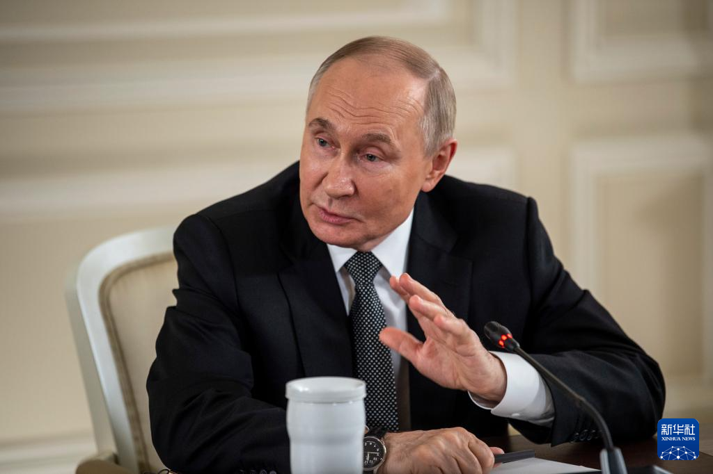 6月18日,第28届圣彼得堡国际经济论坛开幕,俄罗斯总统普京会见新华社等14家出席论坛的世界主要通讯社负责人。普京在回答新华社社长傅华提问时表示,俄罗斯与中国合作内涵丰富,愿与中方加强全方位合作交流。新华社记者 曹阳 摄