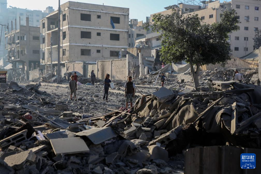 这是10月29日在加沙城一处遭以色列军队空袭后的废墟旁拍摄的巴勒斯坦儿童。新华社发(里泽克·阿卜杜勒贾瓦德摄)