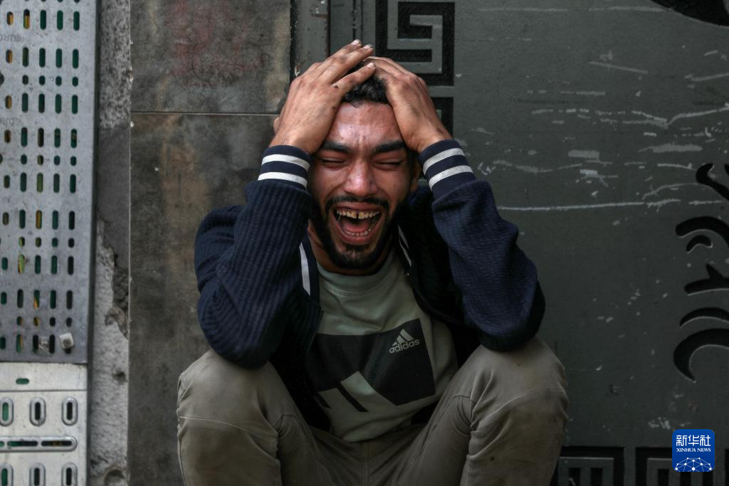 10月29日,一名巴勒斯坦人在加沙城的希法医院痛哭,哀悼在以色列空袭中死难的亲友。新华社发(里泽克·阿卜杜勒贾瓦德摄)