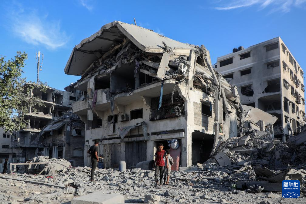 10月29日,巴勒斯坦人在加沙城查看遭以色列军队空袭后的废墟。新华社发(里泽克·阿卜杜勒贾瓦德摄)