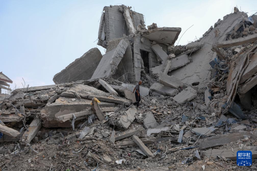 10月29日,一名巴勒斯坦人在加沙城查看遭以色列军队空袭后的废墟。新华社发(里泽克·阿卜杜勒贾瓦德摄)