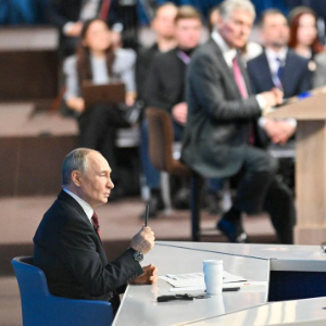 2025年12月19日,俄罗斯总统普京在俄首都莫斯科红场附近的商栈展览中心出席一年一度的“年度盘点”活动。新华社记者郝建伟摄