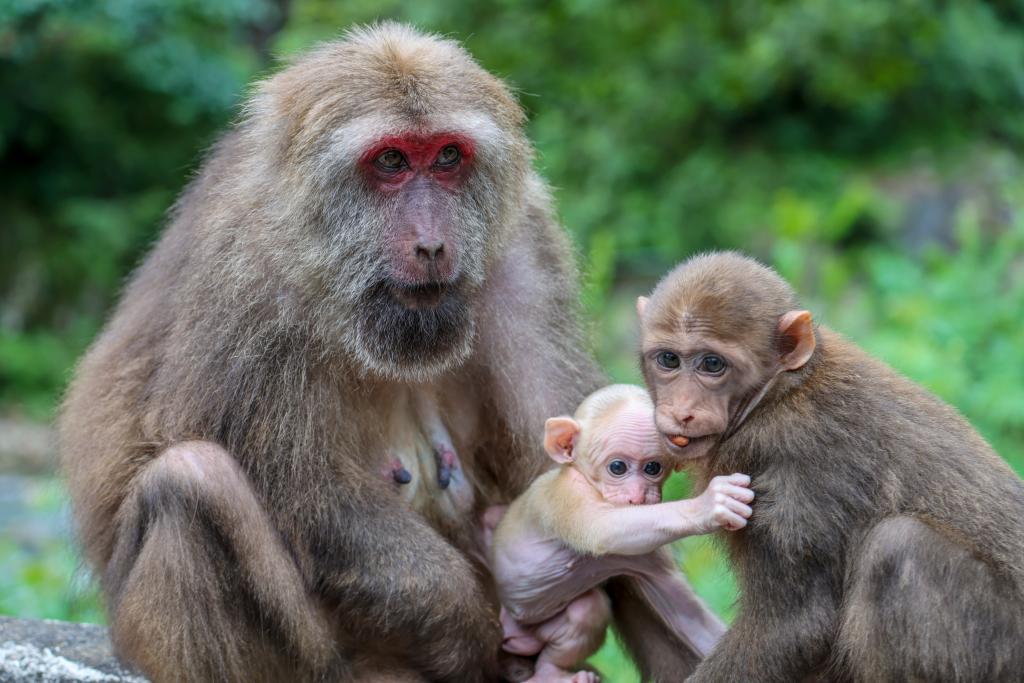 2025年7月22日,藏酋猴在武夷山国家公园腹地桐木村嬉戏。新华社发(邱汝泉 摄)