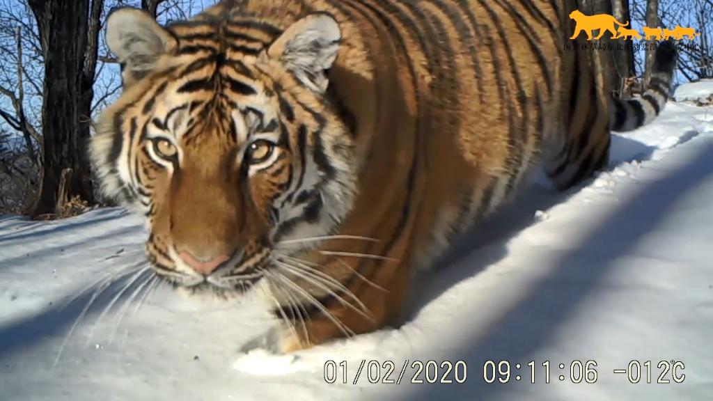 这是2020年1月2日在东北虎豹国家公园内监测到的野生东北虎。新华社发