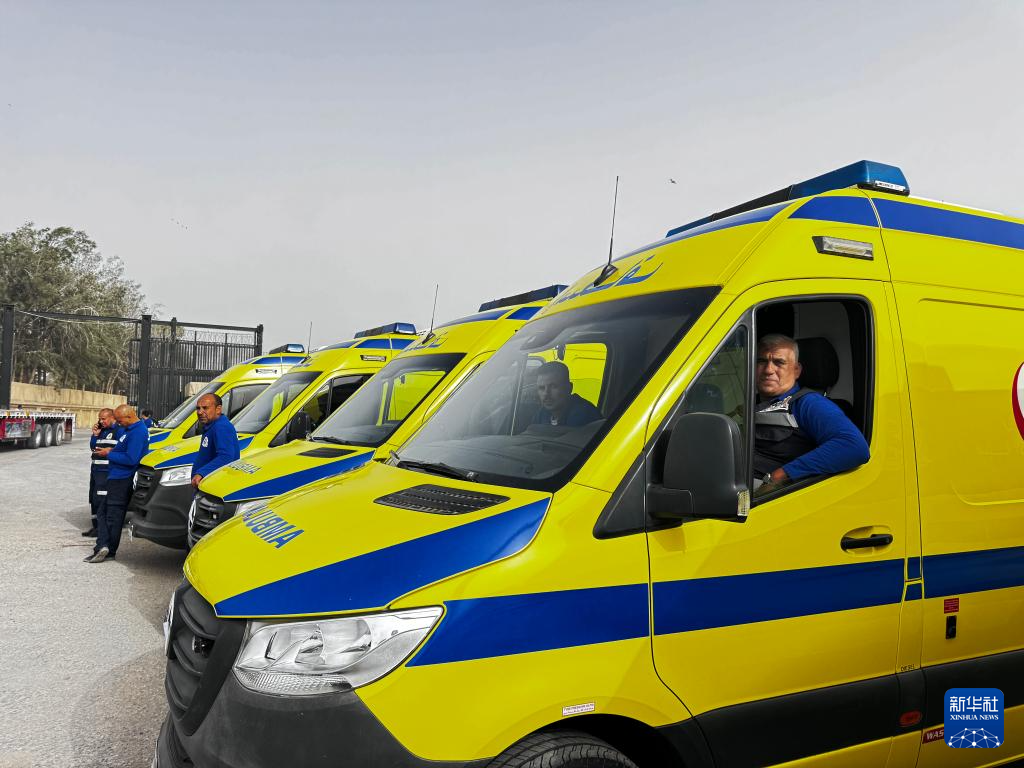2月2日,在加沙地带南部汗尤尼斯,巴勒斯坦工作人员准备前往拉法口岸。新华社发(里泽克·阿卜杜勒贾瓦德摄)
