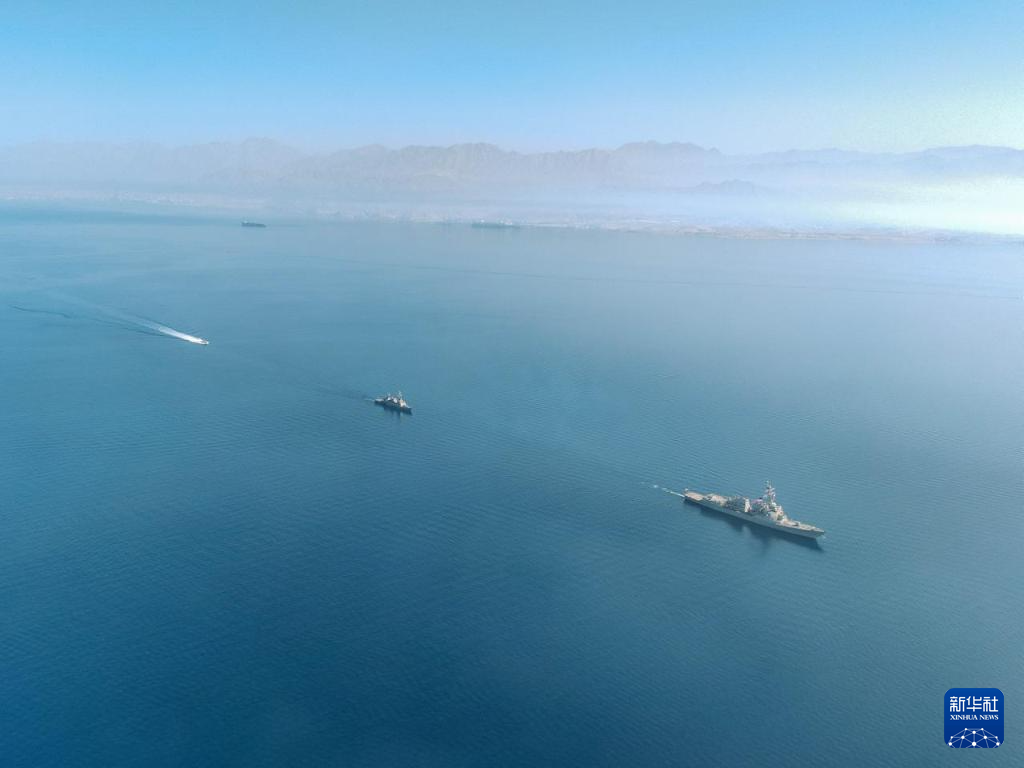 2月1日,一艘美国海军驱逐舰在红海海域参与联合演习。新华社发(以色列国防军供图)