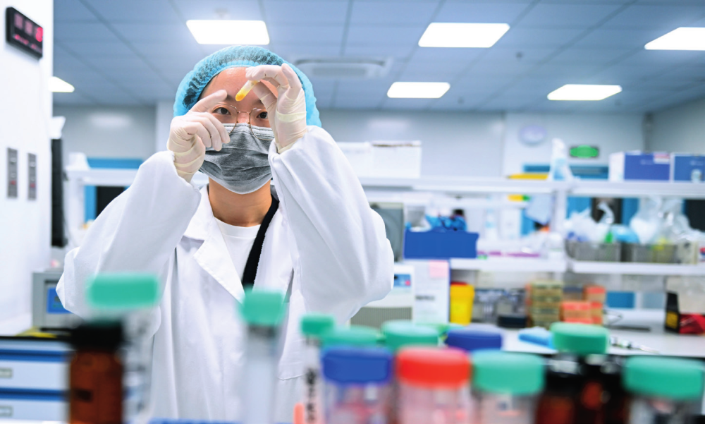 在盛世泰科生物医药技术(苏州)有限公司实验室,工作人员观察化合物配制状态 (2024年11月12日摄)季春鹏摄/本刊