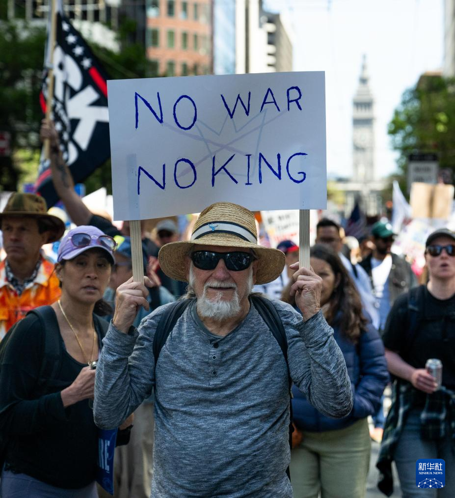3月28日,人们在美国加利福尼亚州旧金山参加“不要国王”抗议活动。 新华社发(朱子于摄)