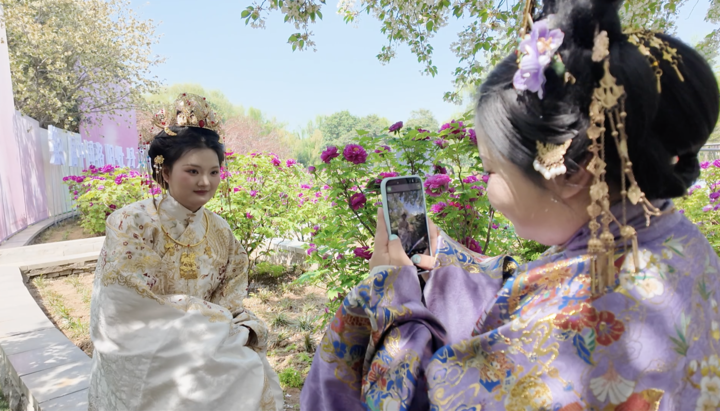 “都说‘洛阳牡丹甲天下’,实地一看,果然名不虚传。”洛阳隋唐城遗址植物园内,一袭“大唐公主”妆造的江苏游客杨欣一边“打卡”,一边感叹:“穿汉服、赏牡丹、逛古城,这才是春天的最佳打开方式。”