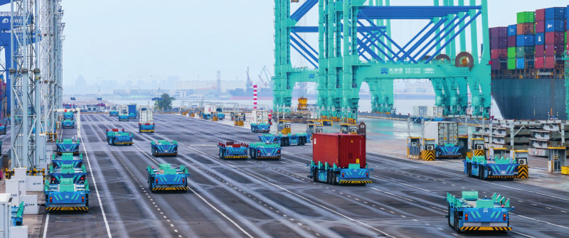 智能水平运输机器人行驶在天津港第二集装箱码头(2025年6月19日摄)赵子硕摄/本刊
