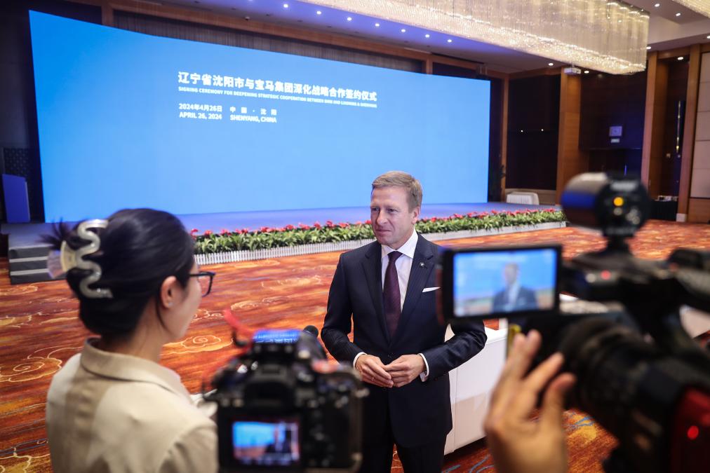4月26日,宝马集团董事长齐普策接受采访。新华社记者 潘昱龙 摄