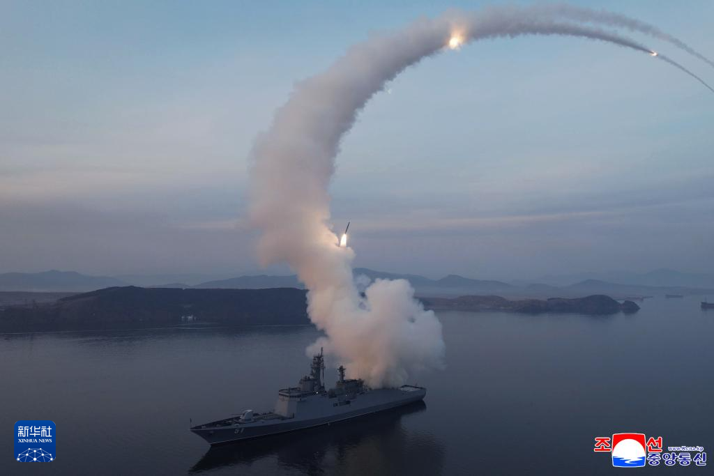 据朝中社3月11日报道,朝鲜人民军海军“崔贤”号驱逐舰作战运用评估试验继续进行,10日再次进行战略巡航导弹试射,朝鲜劳动党总书记、国务委员长金正恩以视频方式观摩试射。新华社/朝中社