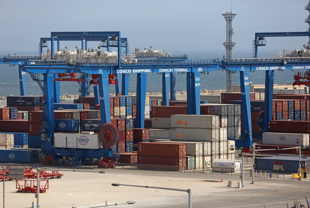 这是2025年10月7日拍摄的秘鲁钱凯港码头摆放的集装箱。位于秘鲁首都利马以北约80公里的钱凯港于2024年11月正式开港,标志着中秘共建“一带一路”取得新的重要成果。新华社发(玛丽安娜·巴索摄)