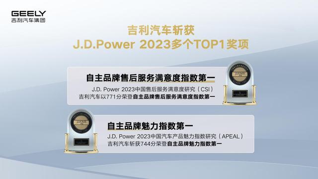 卓越的产品品质和领先的创新技术,也让吉利汽车连续问鼎各大权威榜单,收获了极高的用户满意度。2023年,吉利品牌在中国汽车产品魅力指数研究、中国售后服务满意度研究中均获得自主品牌第一;领克品牌在中国车辆可靠性研究、中国汽车智能化体验研究中获得主流传统能源汽车第一;极氪品牌则在中国新能源汽车客户体验价值研究中荣获中国品牌第一。