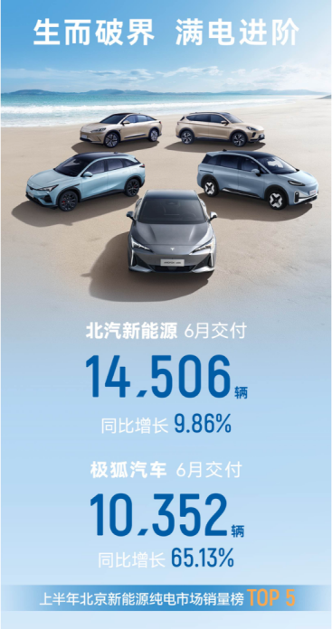 2025年6月,极狐全系交付突破10352辆。其中,明星车型阿尔法S5单月交付达3298辆,位列上半年12-15万级最受欢迎纯电轿车车型TOP6,T5单月交付达4183辆,位列上半年12-15万级最受欢迎纯电SUV车型TOP10,考拉交付2199辆。