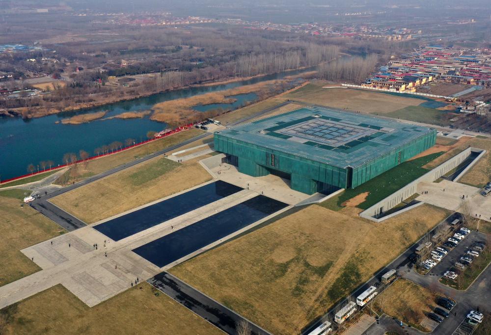 这是2024年2月26日拍摄的位于河南省安阳市的殷墟博物馆新馆(无人机照片)。新华社记者 李安摄