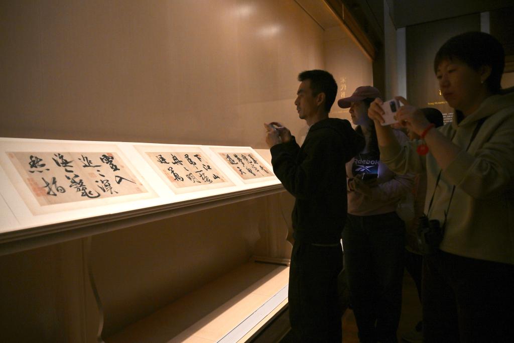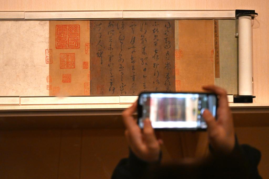 11月14日,观众在上海博物馆东馆中国历代书法馆拍摄北宋米芾的《行书多景楼诗册》。