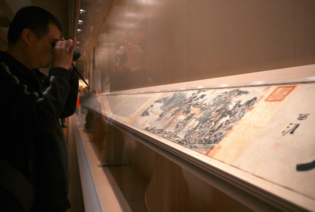11月14日,在上海博物馆东馆中国历代绘画馆,观众在元代王蒙的《青卞隐居图》前驻足观看。