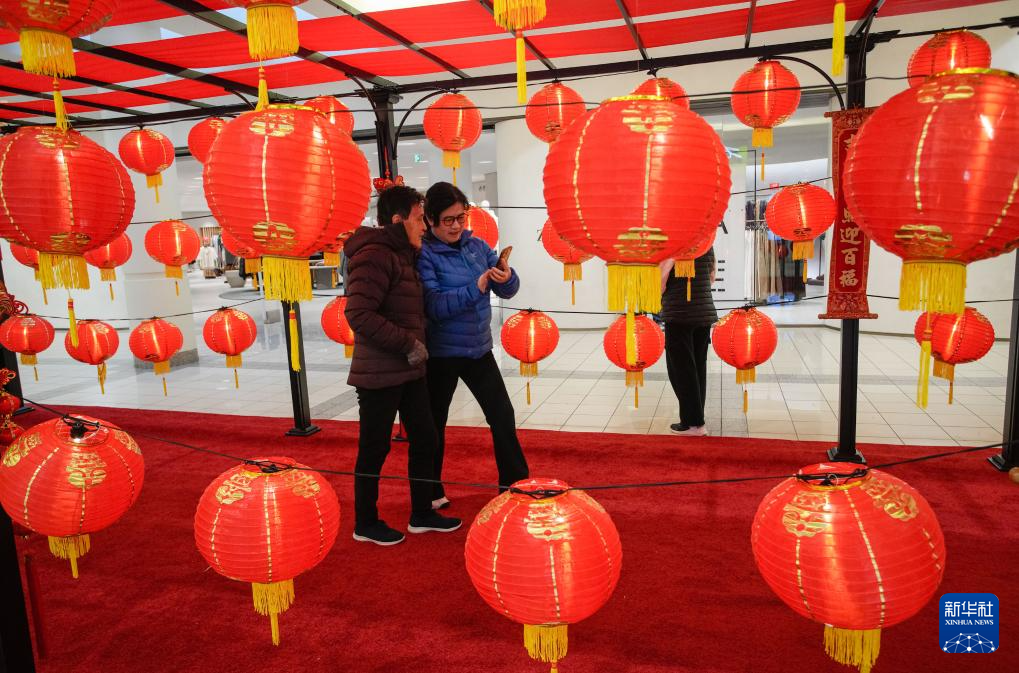 1月13日,加拿大温哥华的一家商场内布置了春节主题装饰。