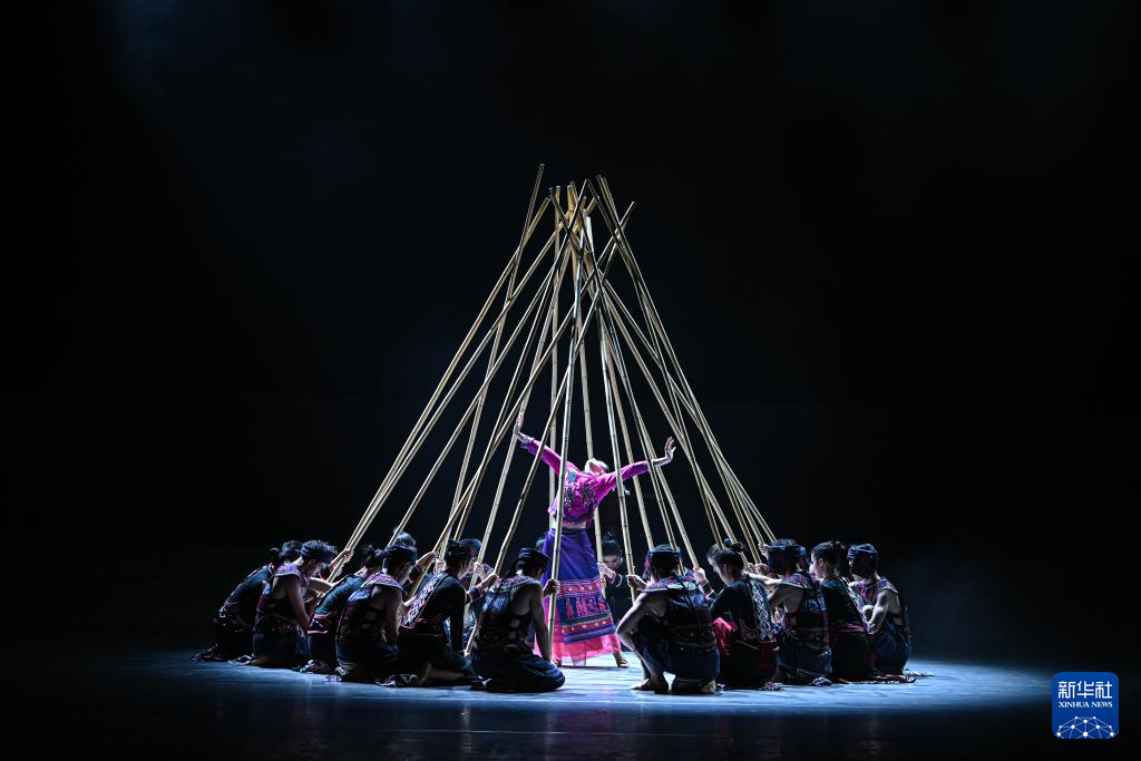 2月8日,演员在位于海口的海南省歌舞剧院表演大型原创民族舞剧《甘工鸟》。