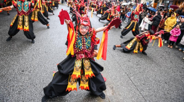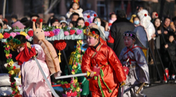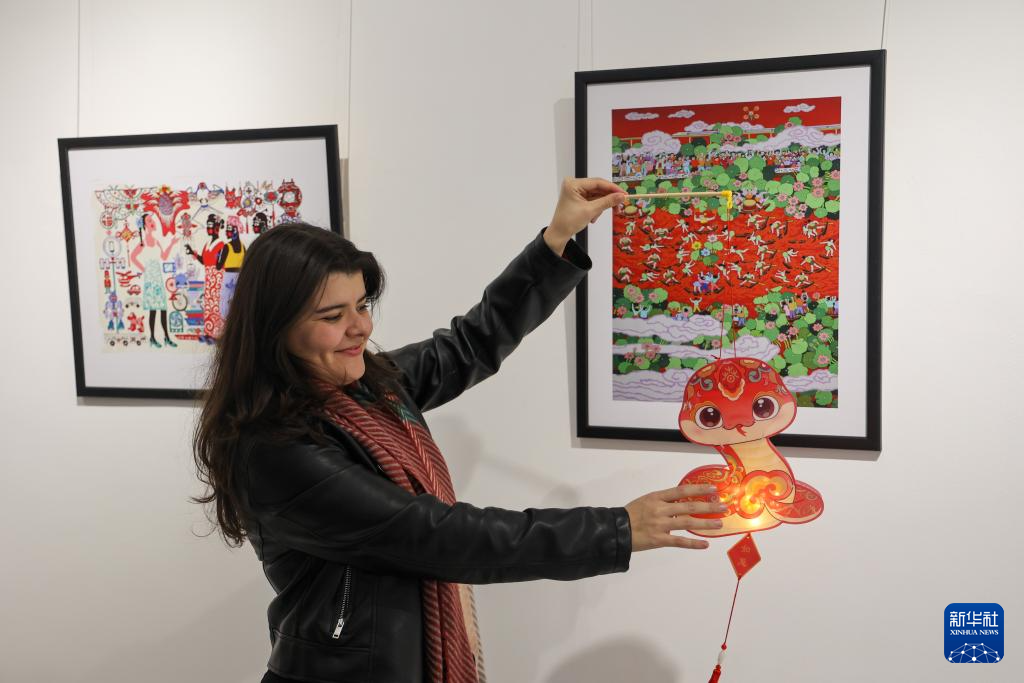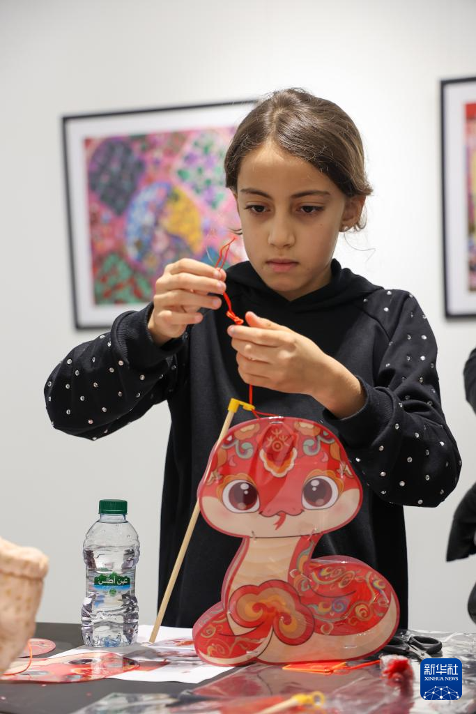 2月12日,在摩洛哥拉巴特,一名女孩体验制作蛇形手提灯笼。