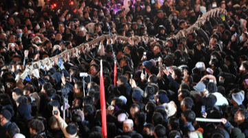 2月12日,在摩洛哥拉巴特,一名女子用手机拍摄蛇形手提灯笼。