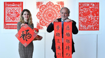 当日,元宵节庆祝活动在拉巴特中国文化中心举行。摩洛哥民众体验蛇形灯笼制作,庆祝元宵节。