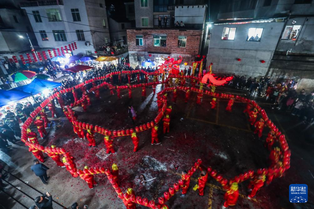 2月15日,大墅镇儒洪村村民们举行“赶十八”舞龙表演。