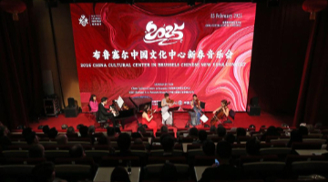 这是2月16日拍摄的贵州省凯里市舟溪镇“甘囊香”芦笙节活动现场。