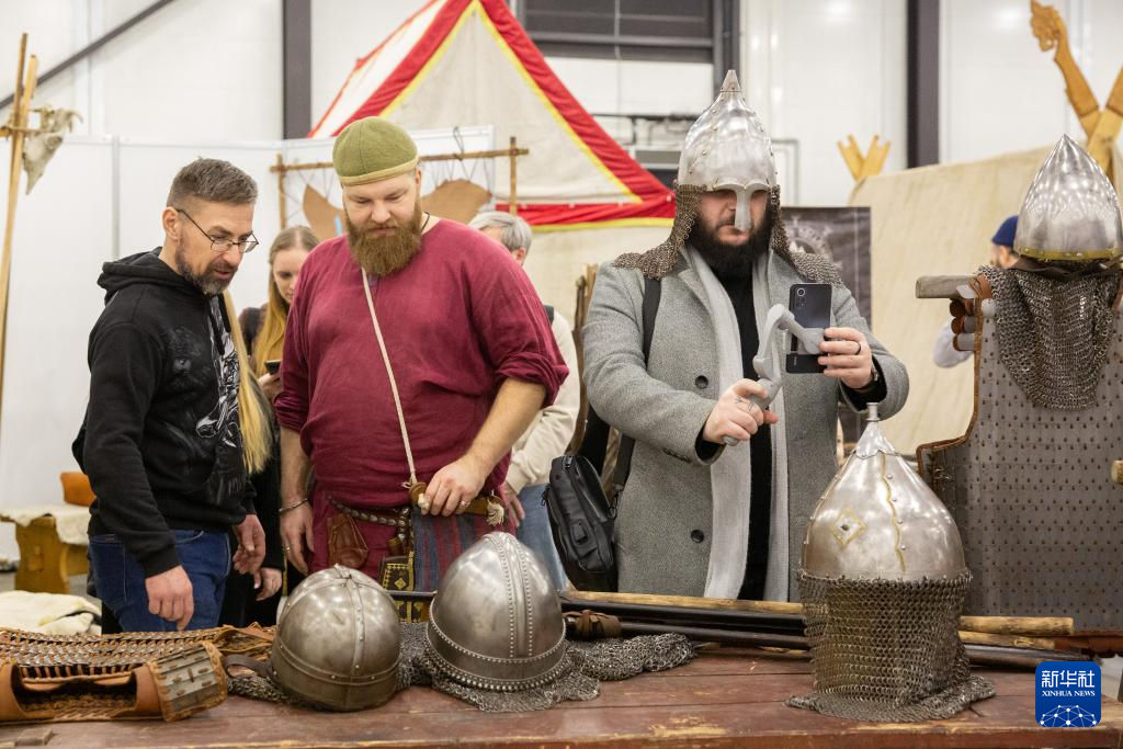 2月23日,在俄罗斯圣彼得堡,市民参观军事历史主题互动展览。