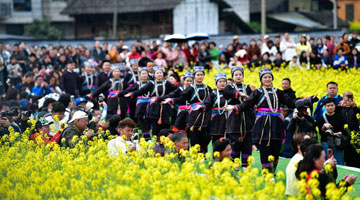 3月13日,孙朋(左)为一对老年顾客介绍银饰。