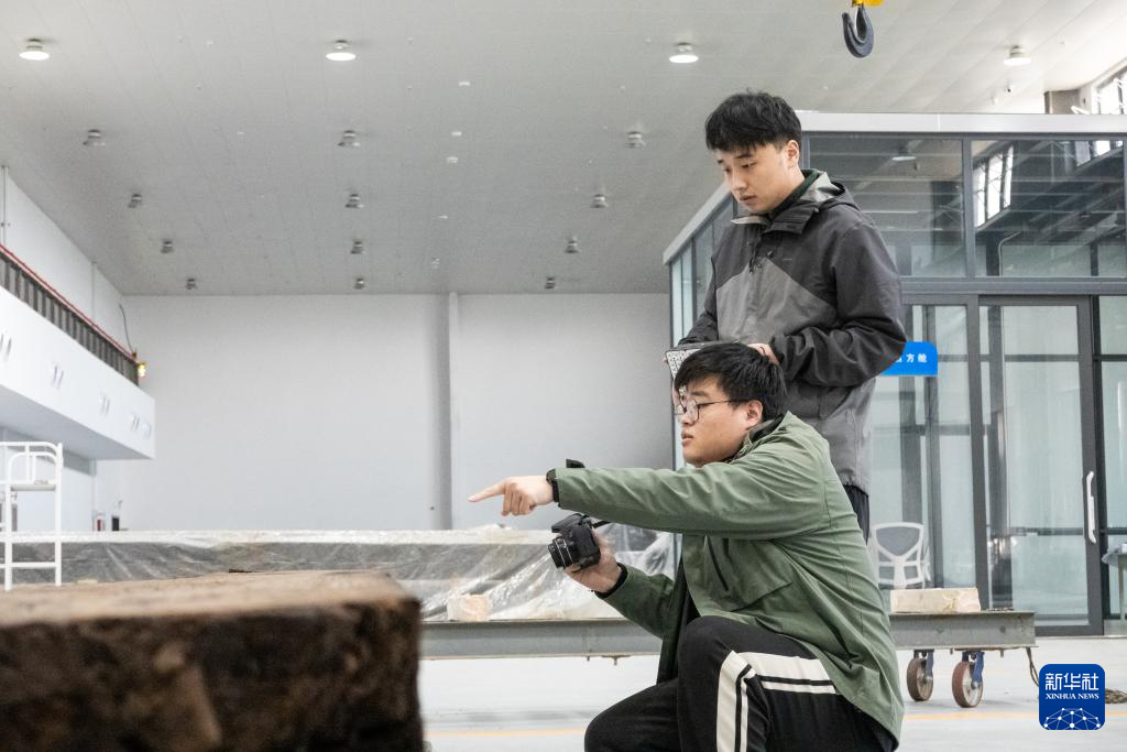 考古人员在安徽淮南武王墩一号墓考古实验室用红外相机拍摄文物(2025年3月10日摄)。新华社记者 赵金正 摄