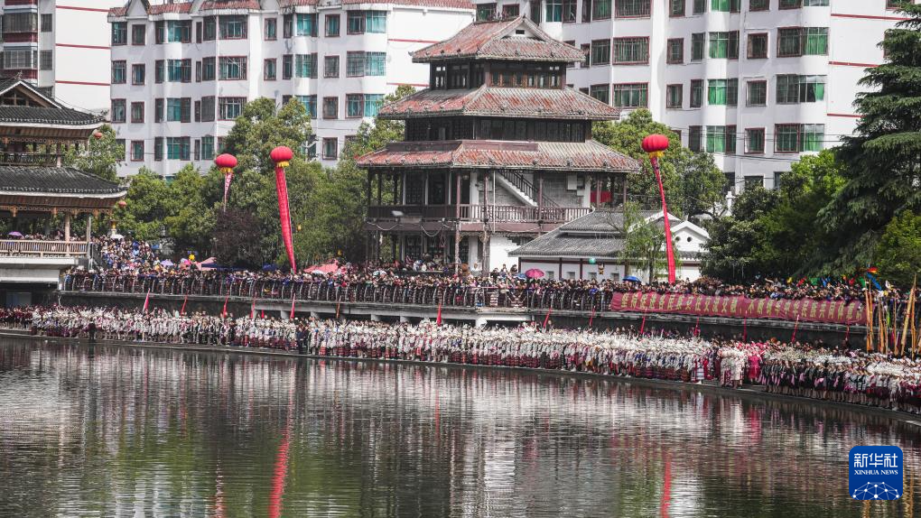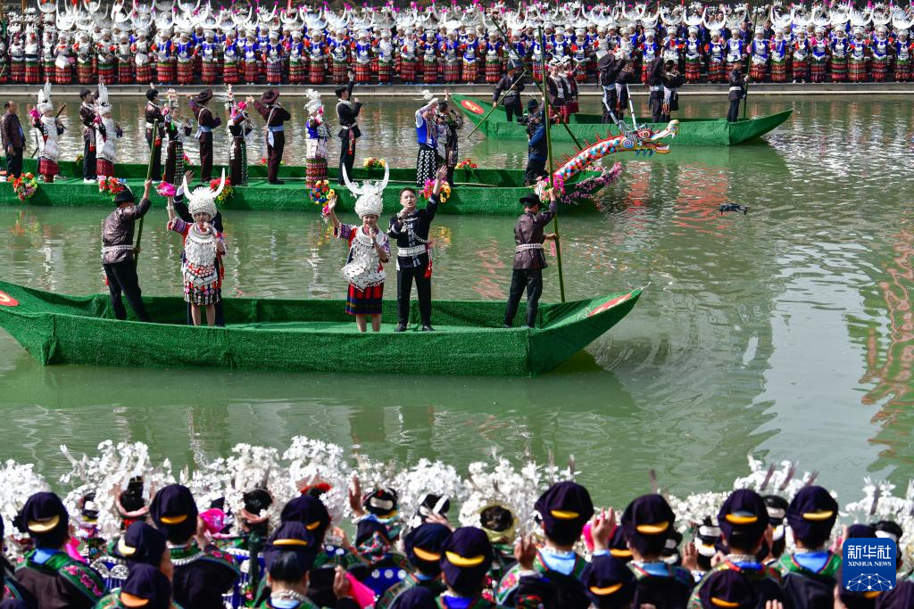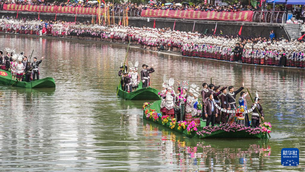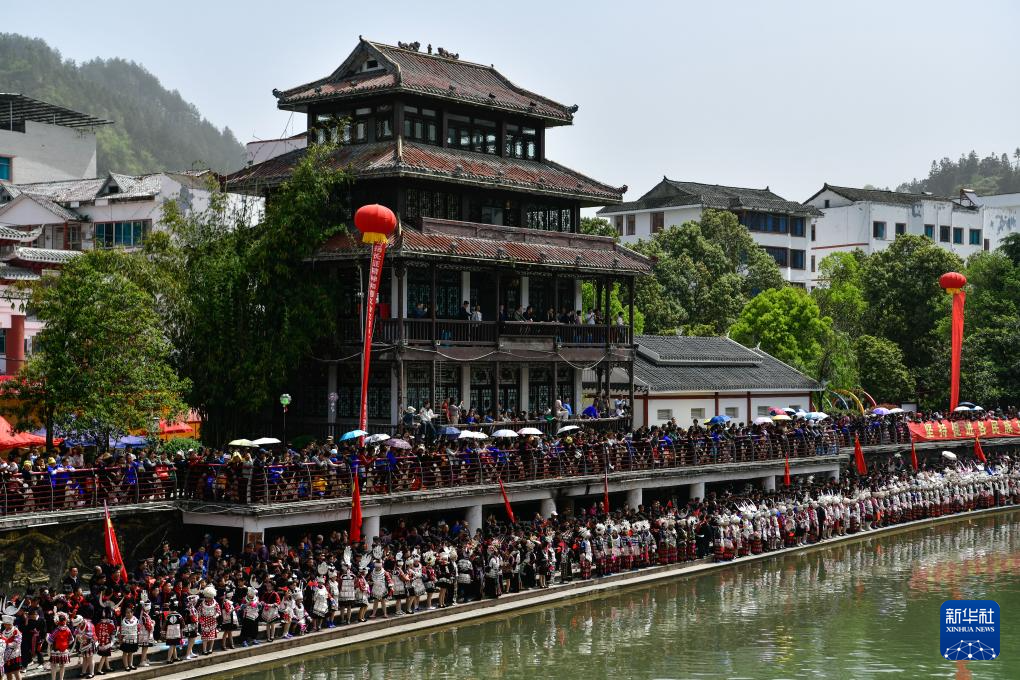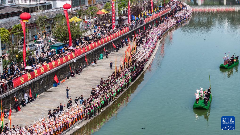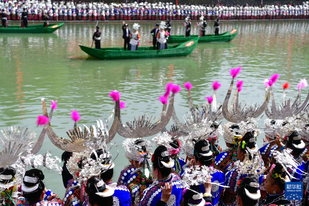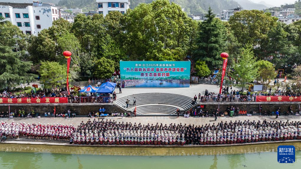 当日,贵州台江2025年苗族姊妹节苗歌对唱活动在台江县翁你河畔举行。来自台江县的万余名苗族群众,身着节日盛装齐聚翁你河畔,以传统对唱的方式,向游客展现苗族飞歌、情歌,欢庆姊妹节。