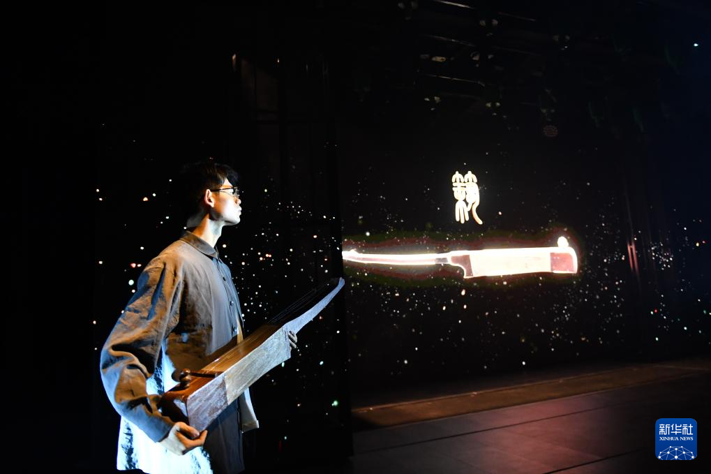 4月12日,演员在舞台剧《寻长沙》中演奏青铜铙。