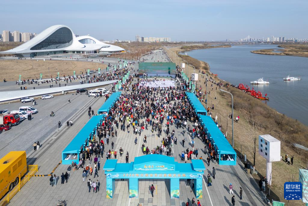 这是4月16日拍摄的2025哈尔滨市开江民俗文化周启动仪式现场(无人机照片)。