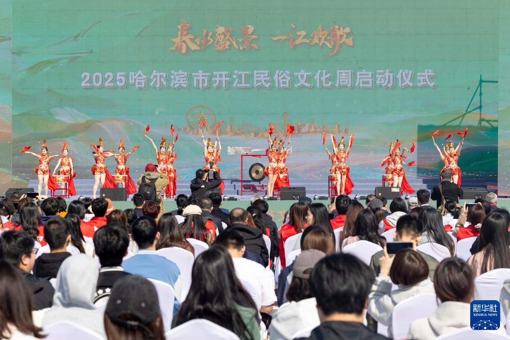 4月16日,演职人员在2025哈尔滨市开江民俗文化周启动仪式现场合唱《大开江》。