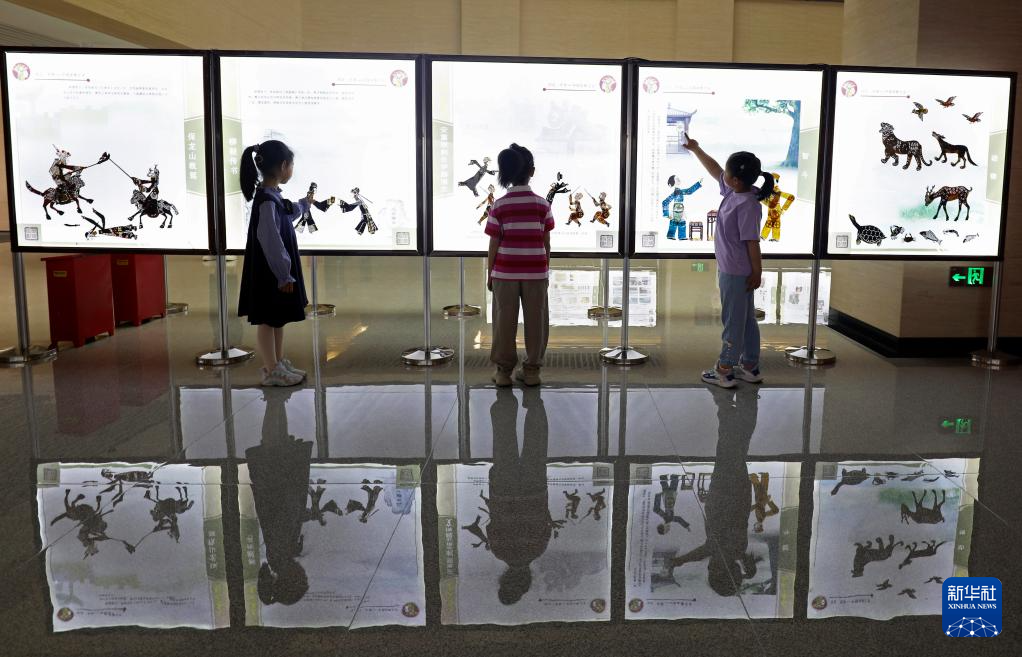 5月18日,观众在河北省唐山市丰润博物馆参观皮影展览。