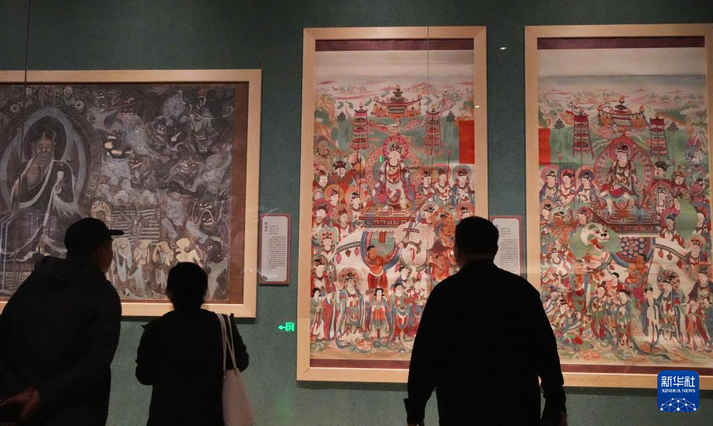5月18日,在辽宁省博物馆,参观者在观看“山海有情·大漠鸣沙—在辽宁遇见敦煌”敦煌文化特展。