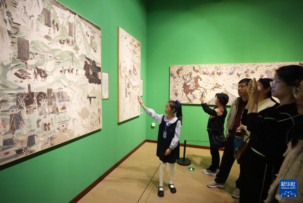 5月18日,在辽宁省博物馆“山海有情·大漠鸣沙—在辽宁遇见敦煌”敦煌文化特展上,来自沈阳市浑南区第二小学的小学生为参观者进行讲解。