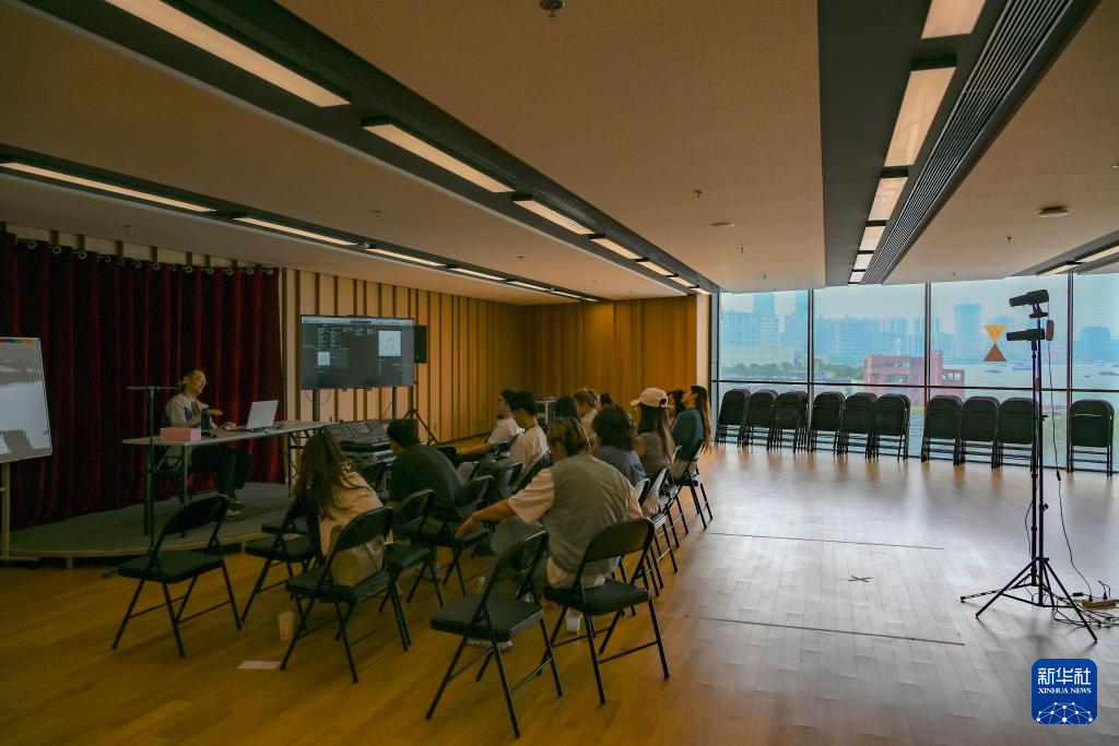演员们在上海西岸大剧院音乐剧工作坊讨论编曲(5月17日摄)。