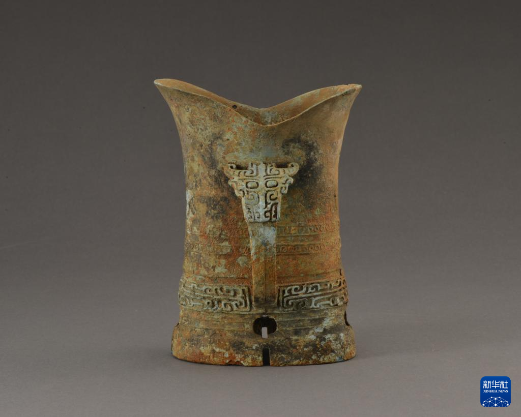 湖北黄陂盘龙城遗址杨家湾M17出土的铜带鋬觚形器(资料照片)。新华社发(全国十大考古新发现活动办公室供图)