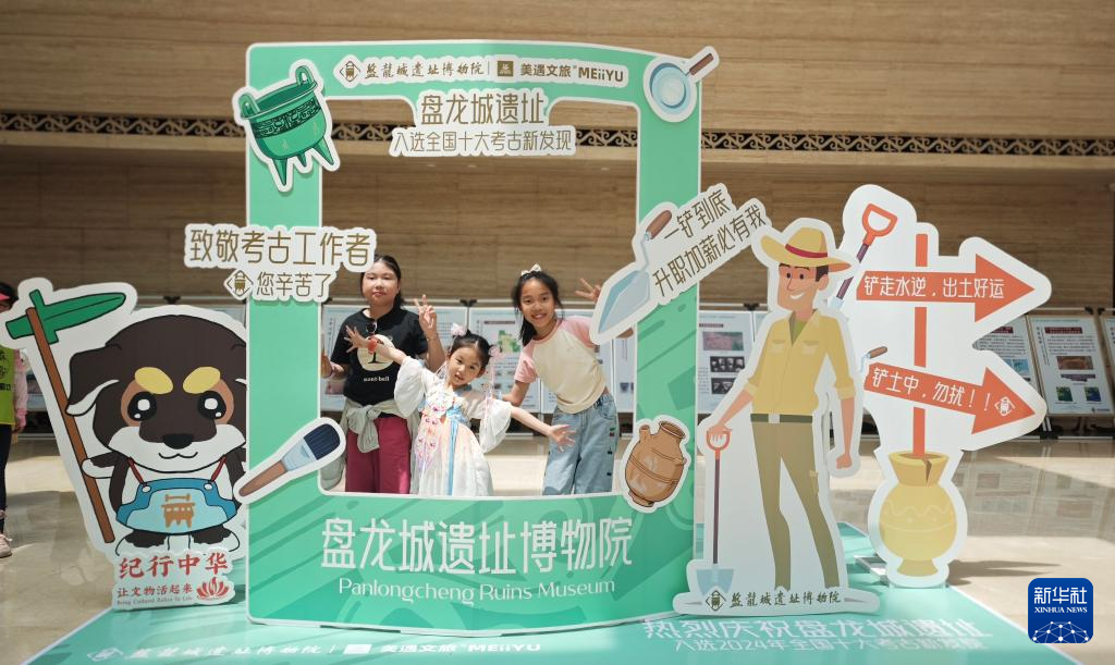 观众在位于湖北省武汉市的盘龙城遗址博物院参观打卡(2025年5月1日摄)。新华社记者 喻珮 摄
