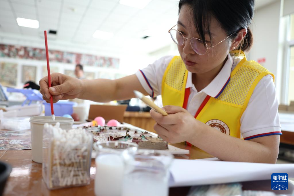 5月22日,来自甘肃省博物馆的参赛选手李娜娜在壁画文物修复比赛中。