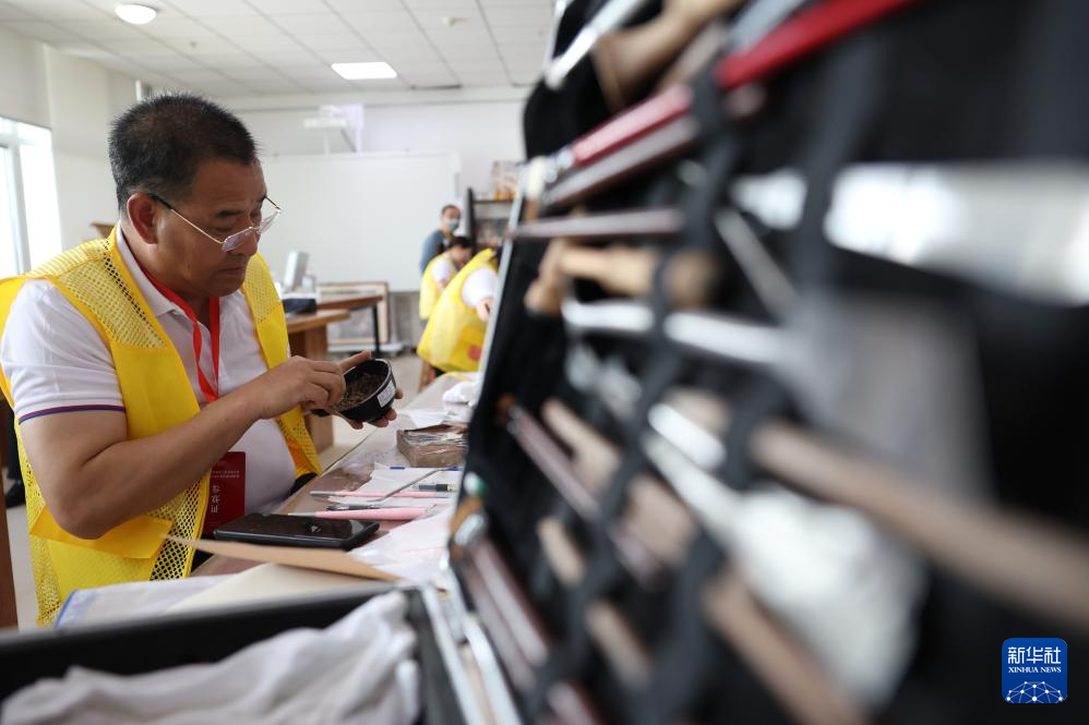 5月22日,来自新疆维吾尔自治区博物馆的参赛选手石亮在金属文物修复比赛中。