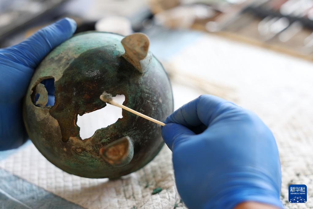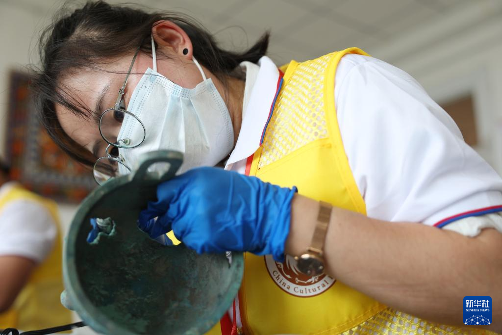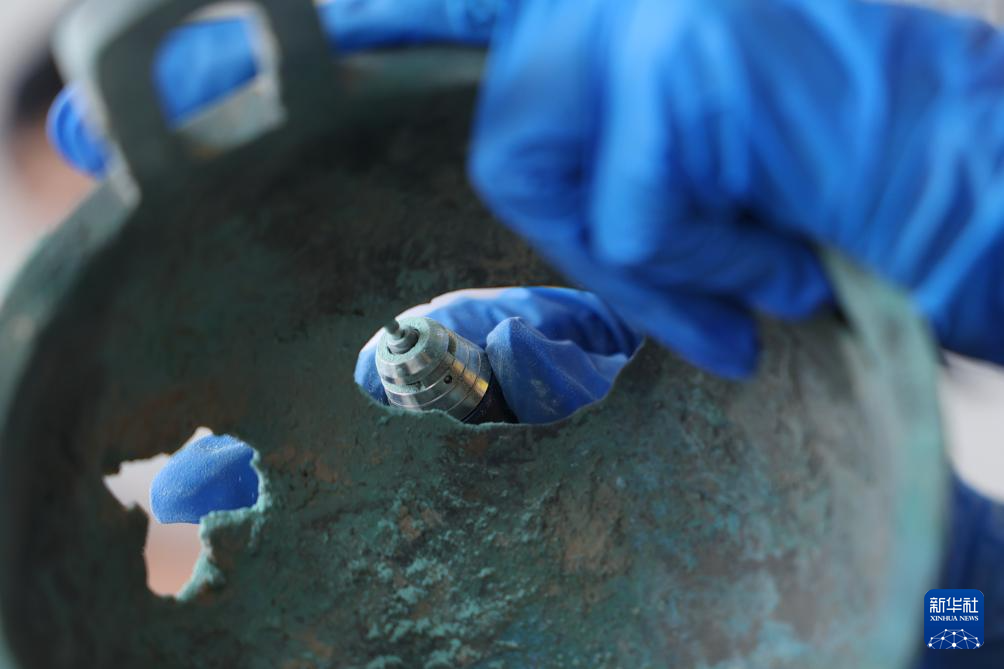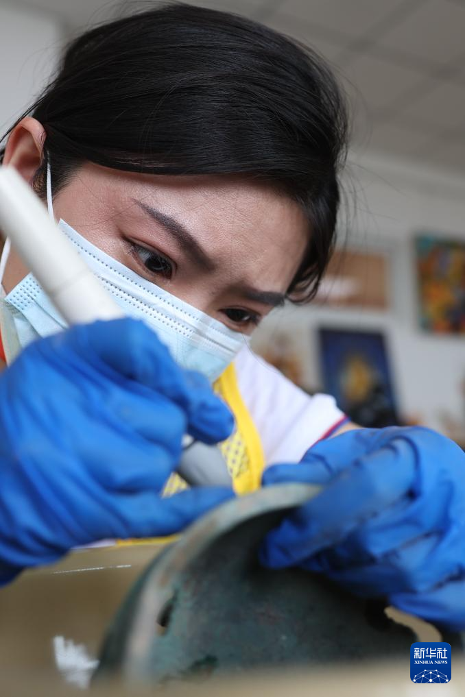 5月22日,来自新疆维吾尔自治区博物馆的参赛选手刘子虔在金属文物修复比赛中。