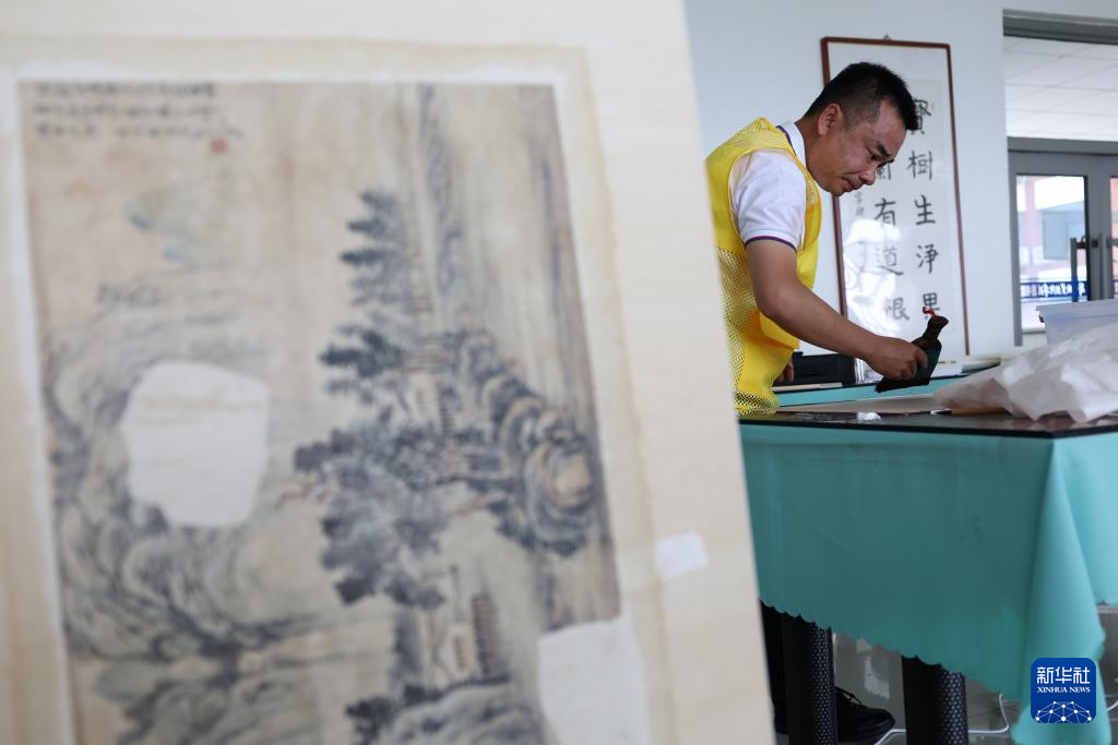 5月22日,来自张掖大佛寺文物研究所的参赛选手安博在纸张书画文物修复比赛中。