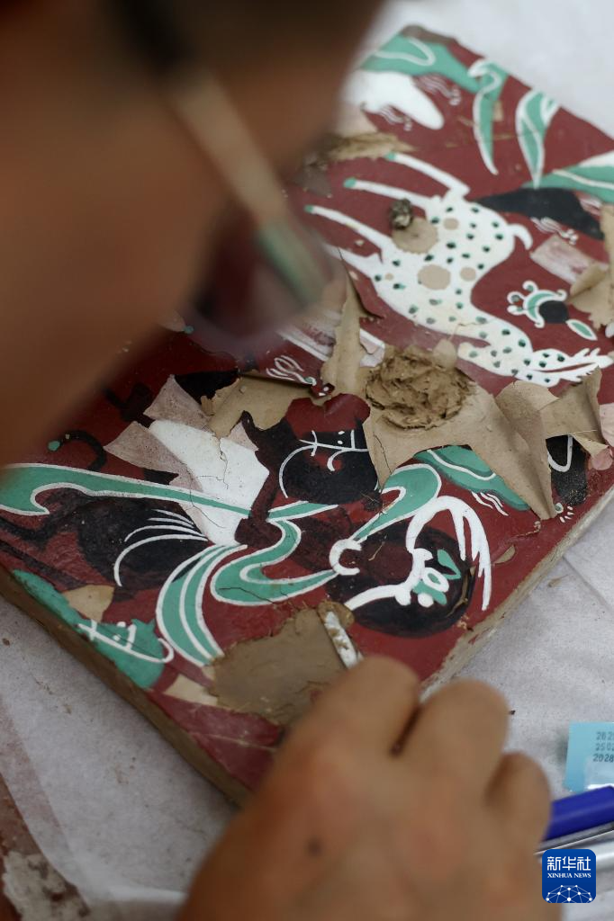 5月22日,来自麦积山石窟艺术研究所的参赛选手李瑞祥在壁画文物修复比赛中。