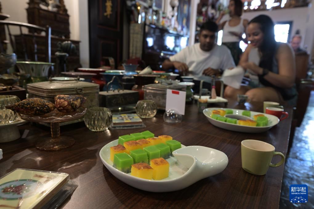 5月11日,人们在新加坡娘惹博物馆举行的新加坡文化遗产节活动中品尝娘惹糕点。