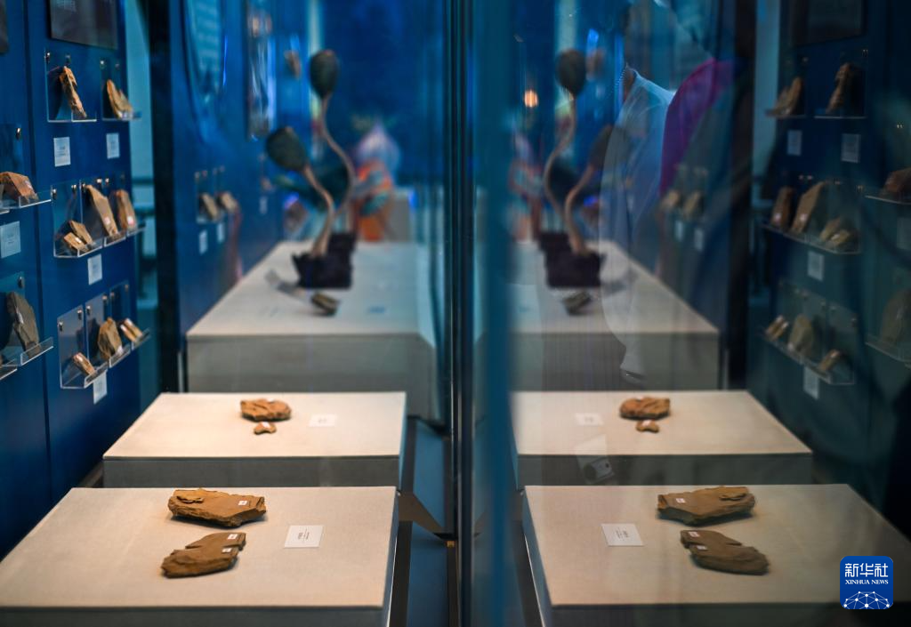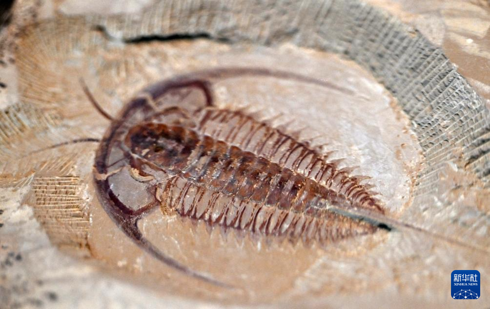 这是6月19日拍摄的“寒武纪的黎明—澄江生物群与生命多样性的起源”主题展上的一件古生物化石。